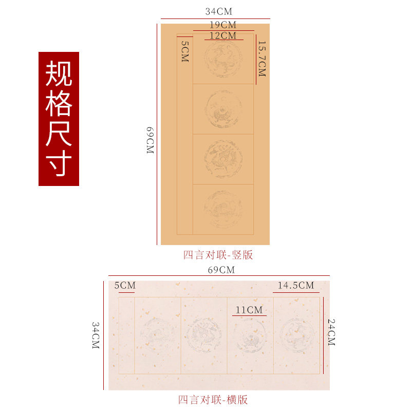 📚 蜡染瓦当四言对联宣纸半生熟书法双五七言文房楹联书法作品专用纸