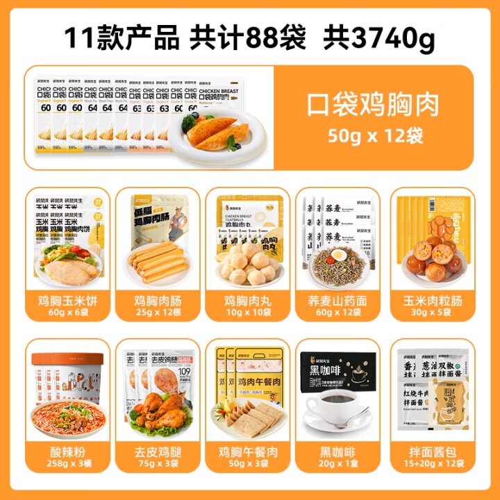📚 袋鼠先生一周轻食套餐3740g(88袋)7天全餐鸡胸肉代餐减脂餐肪