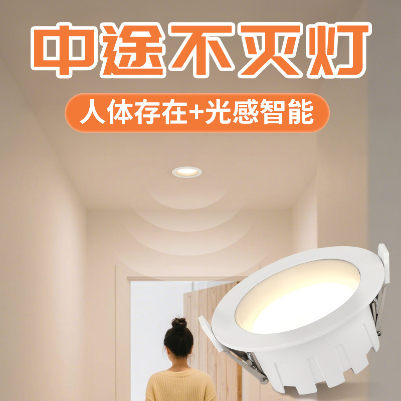 📚 感应筒灯人体存在人在一直亮嵌入式微波雷达夜间过道入户门射灯