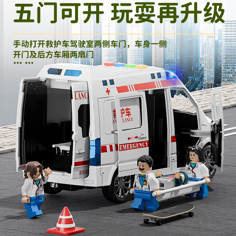 📚 儿童120救护车玩具大号超大号仿真5开门音乐讲故事男孩女孩玩具车