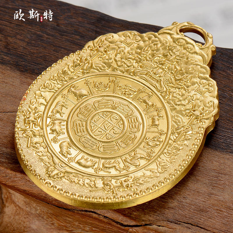 📚 欧斯特 九宫八卦吊坠十二属相腰牌挂饰 家用用品精工雕刻铜牌挂件