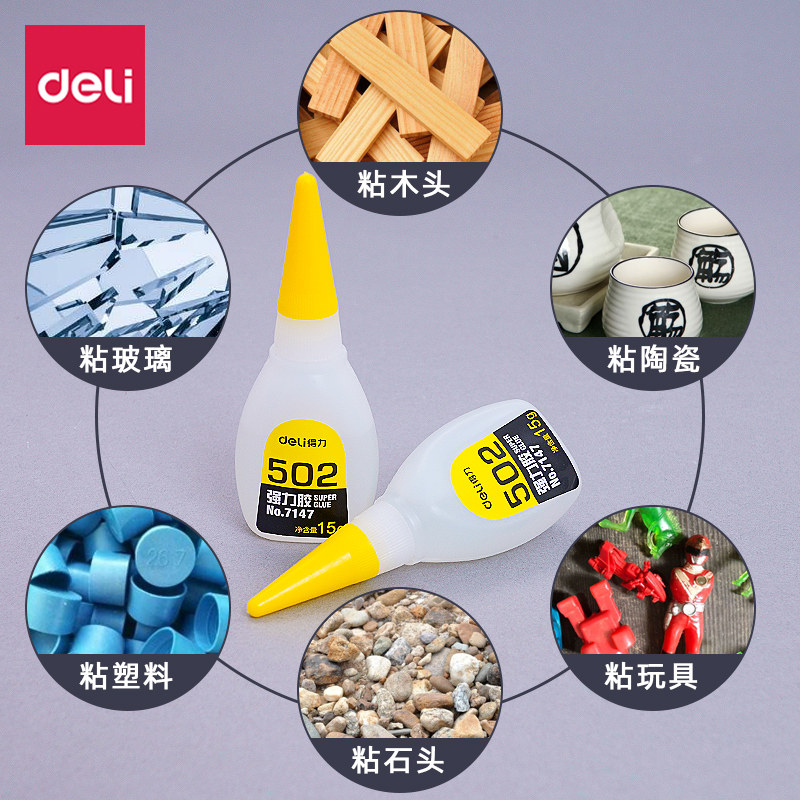 📚 得力502快干胶水强力瞬间胶塑料金属玻璃陶瓷木材手工模型粘胶水