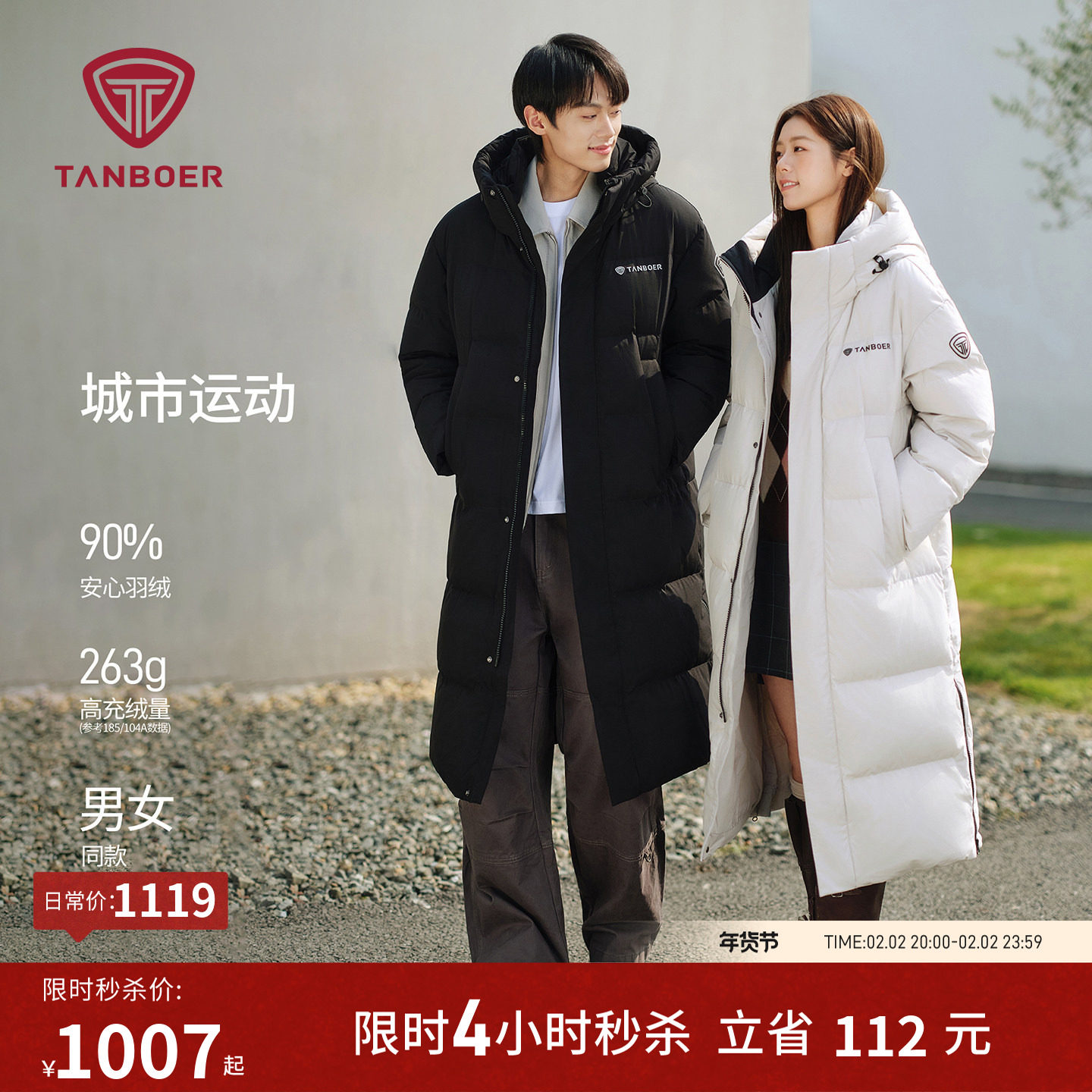 📚 坦博尔25年冬季新款运动羽绒服男女同款连帽长款情侣保暖舒适外套