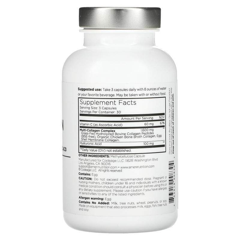 📚 Codeage,Amen胶原蛋白维生素 C透明质酸胶囊补充维生素C