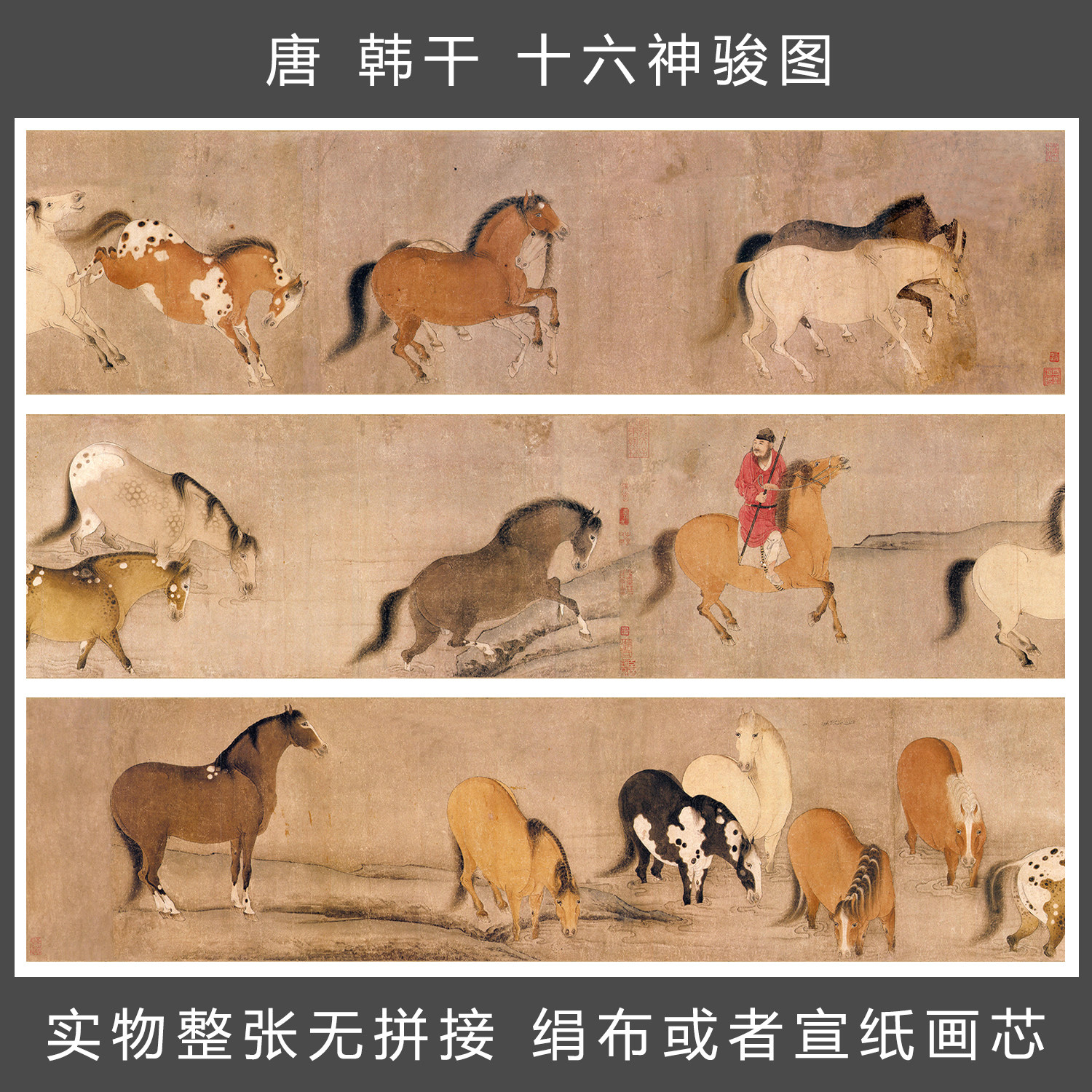 📚 唐 韩干 十六神骏图 国画工笔画动物画 微喷 装饰画文化