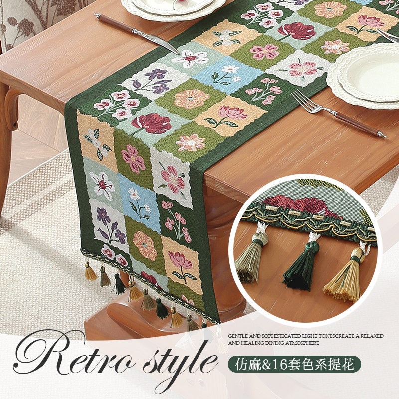 📚 美式复古桌旗轻奢高级五斗柜电视柜鞋柜盖布长条桌布绿色茶几盖巾