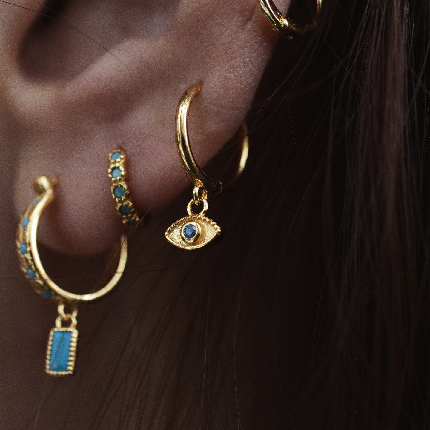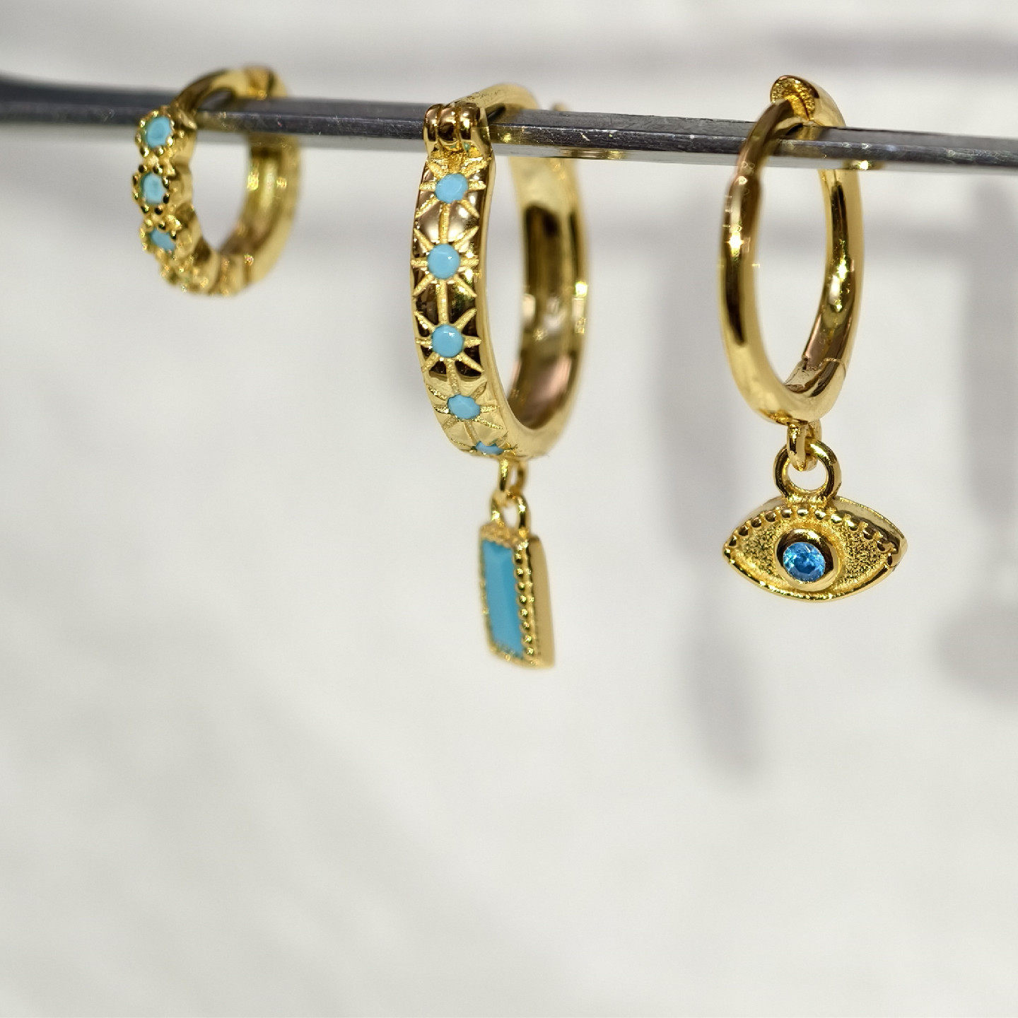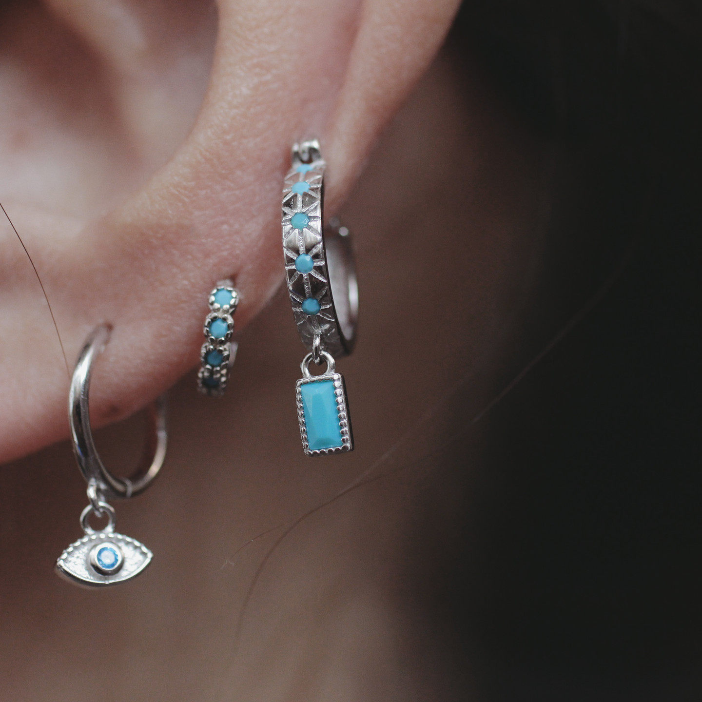 📚 恶魔之眼耳环925耳骨环仿蓝松石镶钻星芒眼睛女小众百搭耳钉耳饰