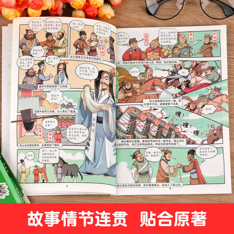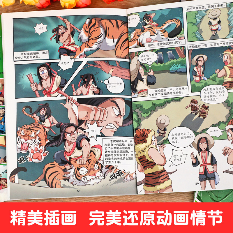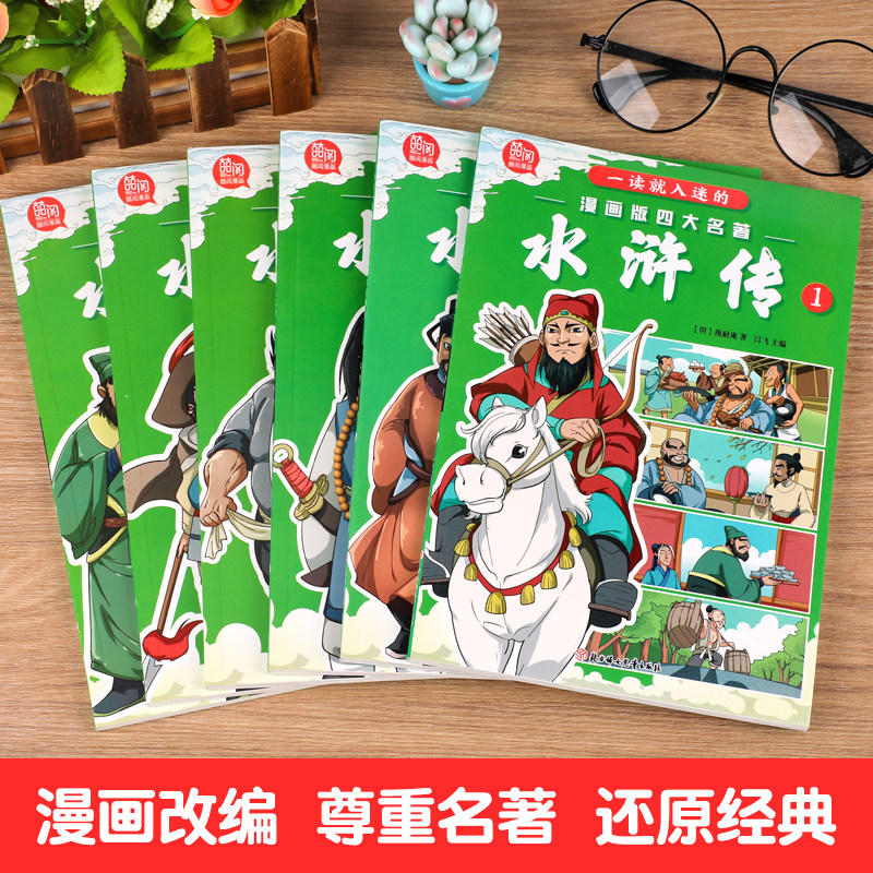 📚 全套6册一读就入迷的漫画版四大名著水浒传正版施耐庵原著古典小说经典故事书儿童版彩绘版小学生一二三年级必读课外书阅读书籍