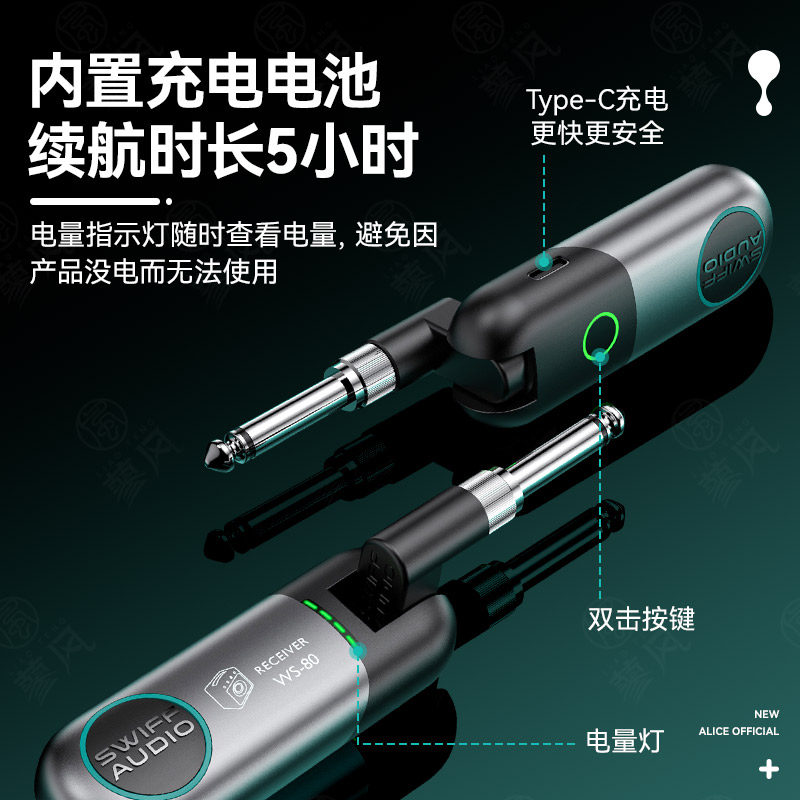 📚 SWIFF瑞孚WS-80收发器电吉他无线发射接收器贝斯乐器音频连接线