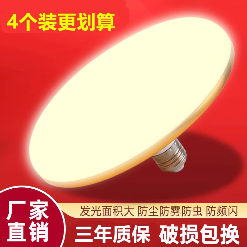 📚 led灯泡暖光飞碟灯家用吊灯护眼省电节能超亮e27大螺口防水照明灯