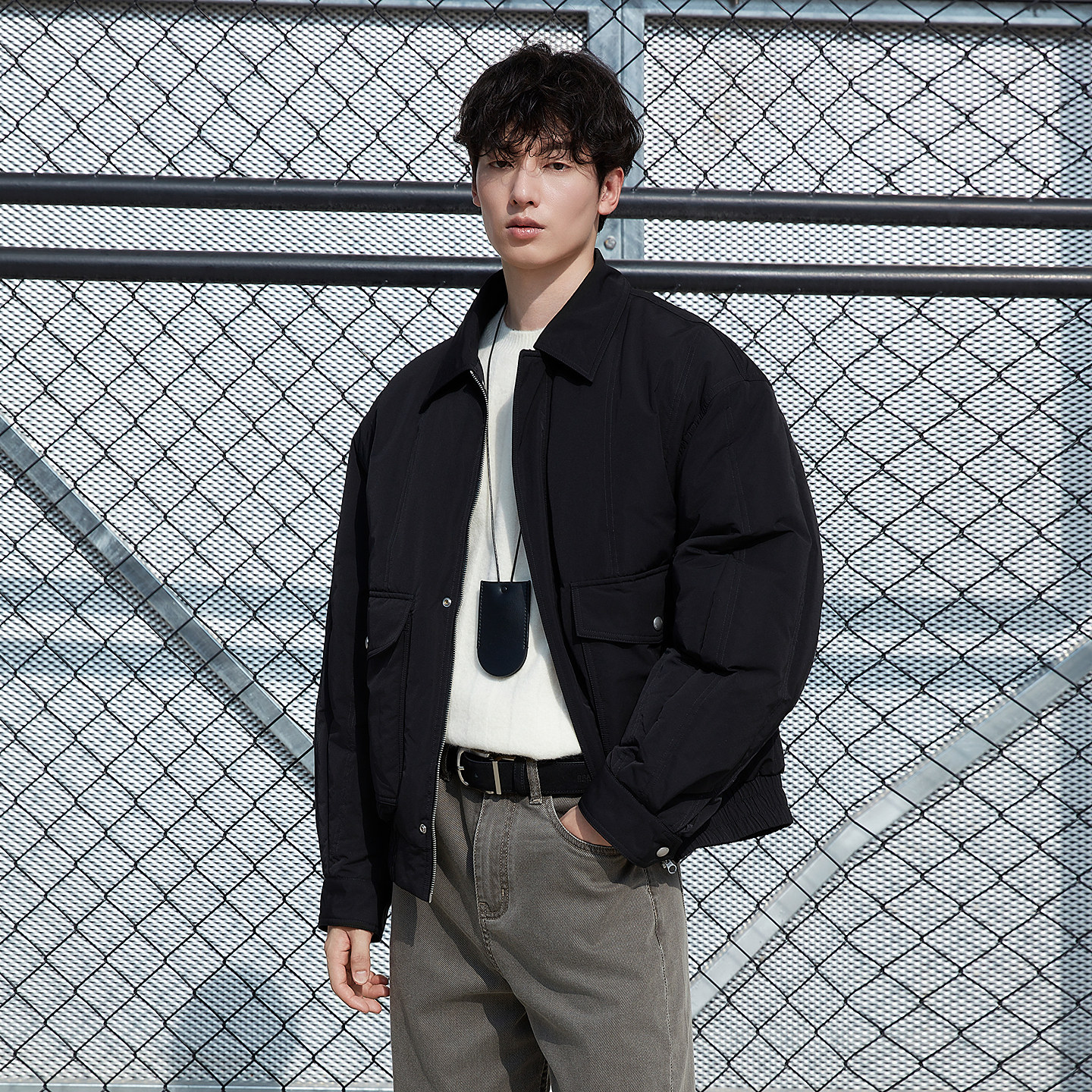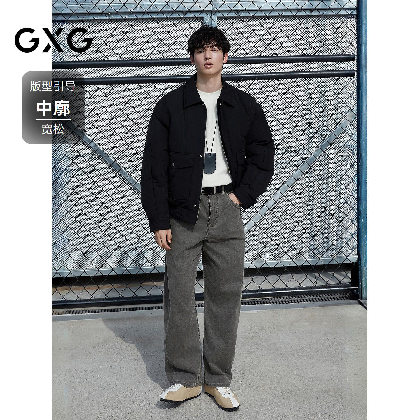📚 GXG男装 翻领设计加厚外套黑色短款羽绒服 25年冬新品
