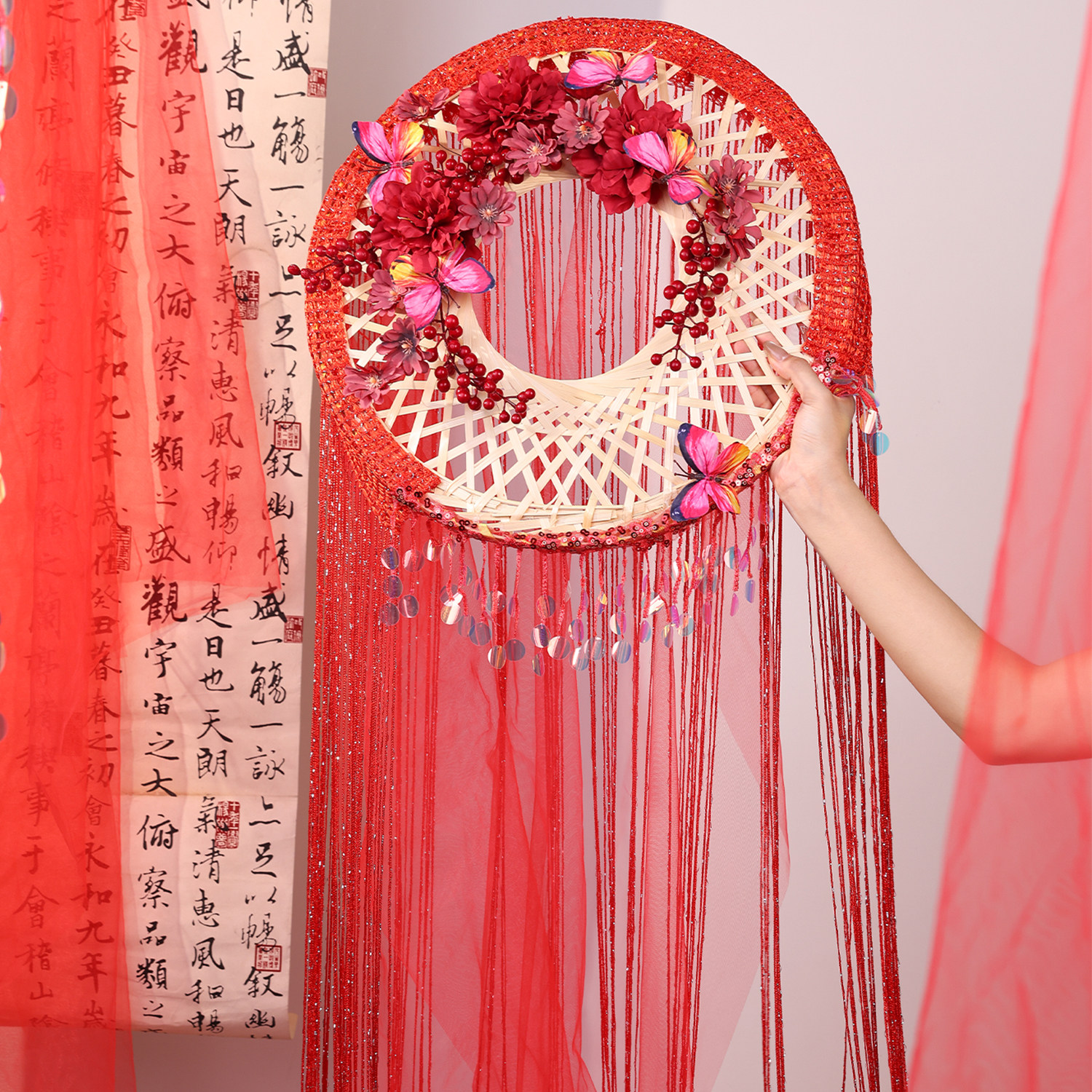 📚 红色长纱流苏斗笠帷帽仙美古风发饰中式簪花竹笠汉服头饰影视道具