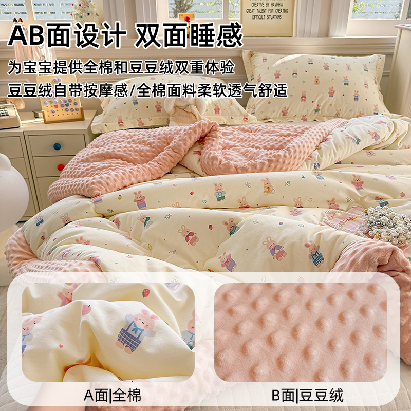 📚 南小槿儿童大豆被新生儿A类纯棉豆豆绒盖毯婴儿午睡被子四季通用