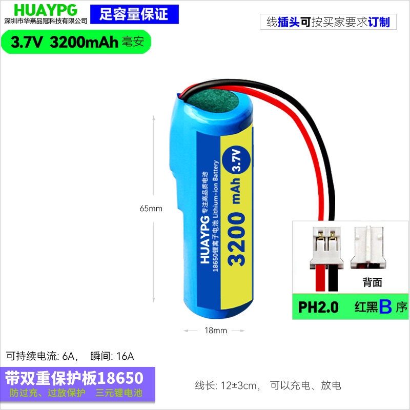 📚 18650锂电池DIY组装配件3.7V带双重保护板内置带线音响增氧泵电池