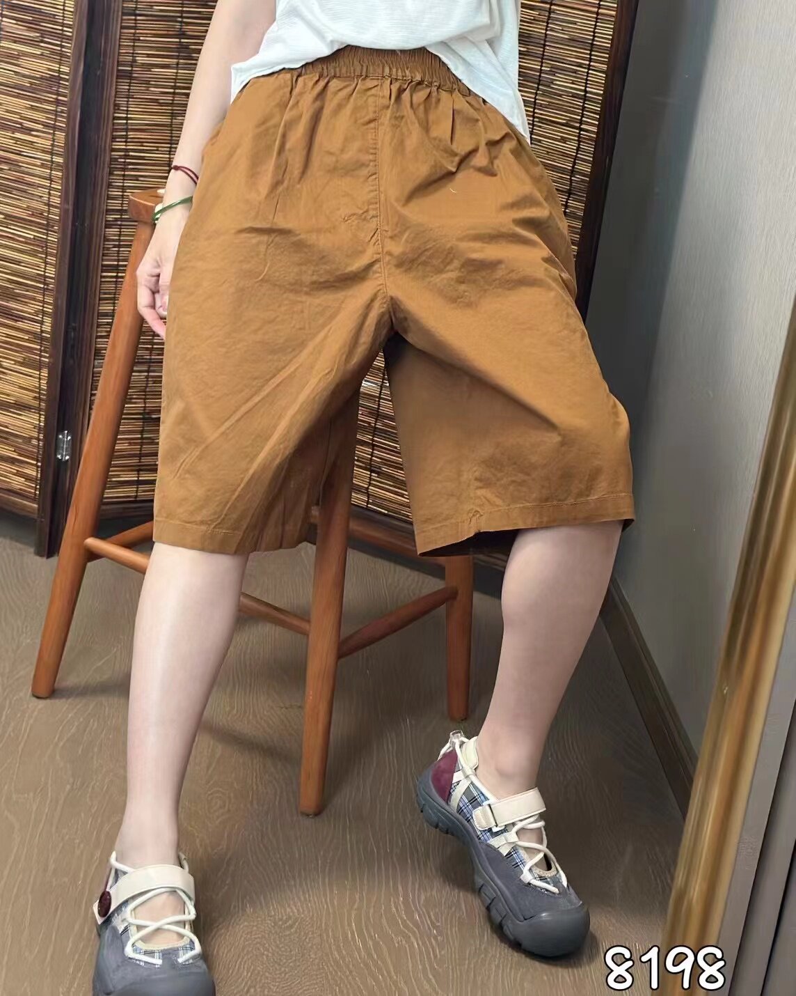 📚 复古大码纯棉六分阔腿裤女士夏季新款宽松休闲风纯色百搭直筒短裤