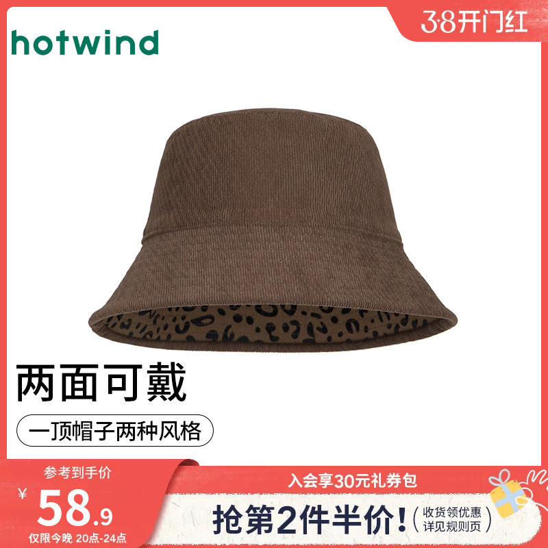 📚 热风女士帽子棕色渔夫帽2025年冬季新款时尚双面戴豹纹灯芯绒帽子