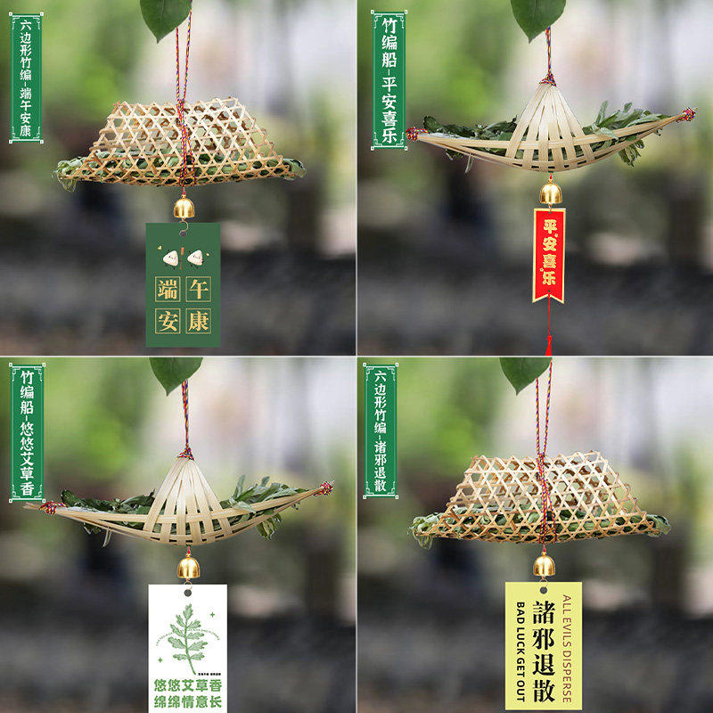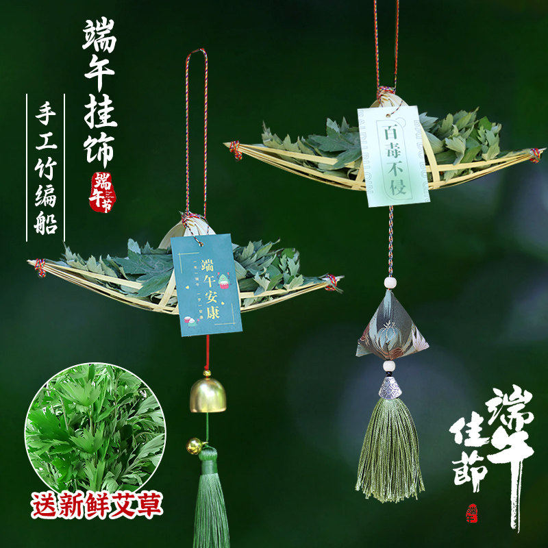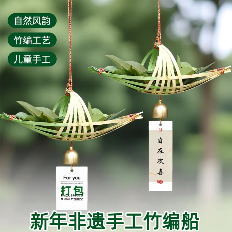 📚 非遗竹编龙舟小船艾草挂件门挂幼儿园儿童创意手工制作diy材料包