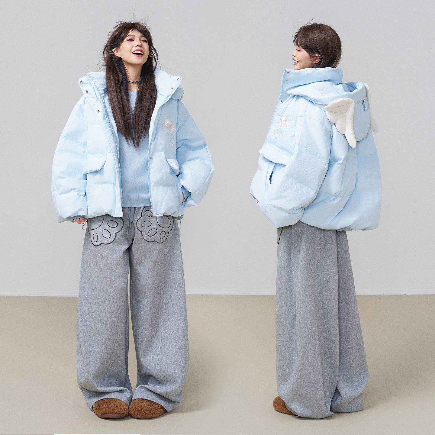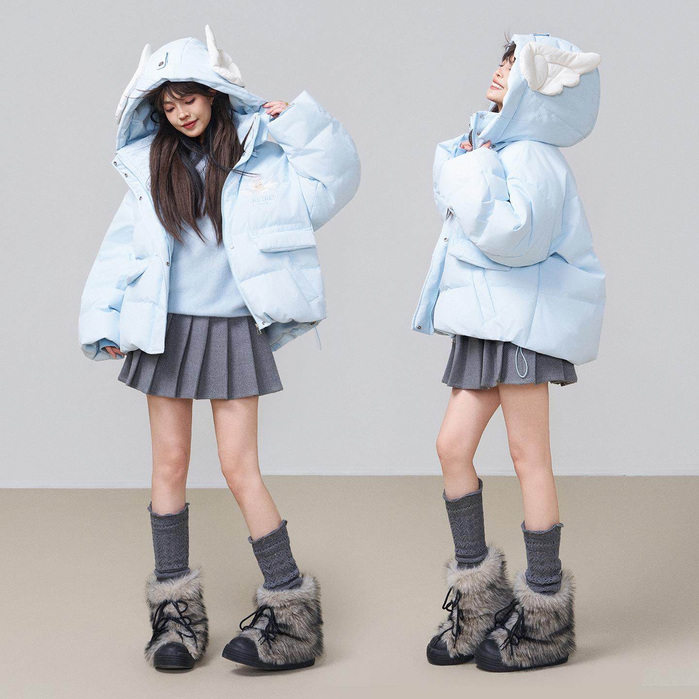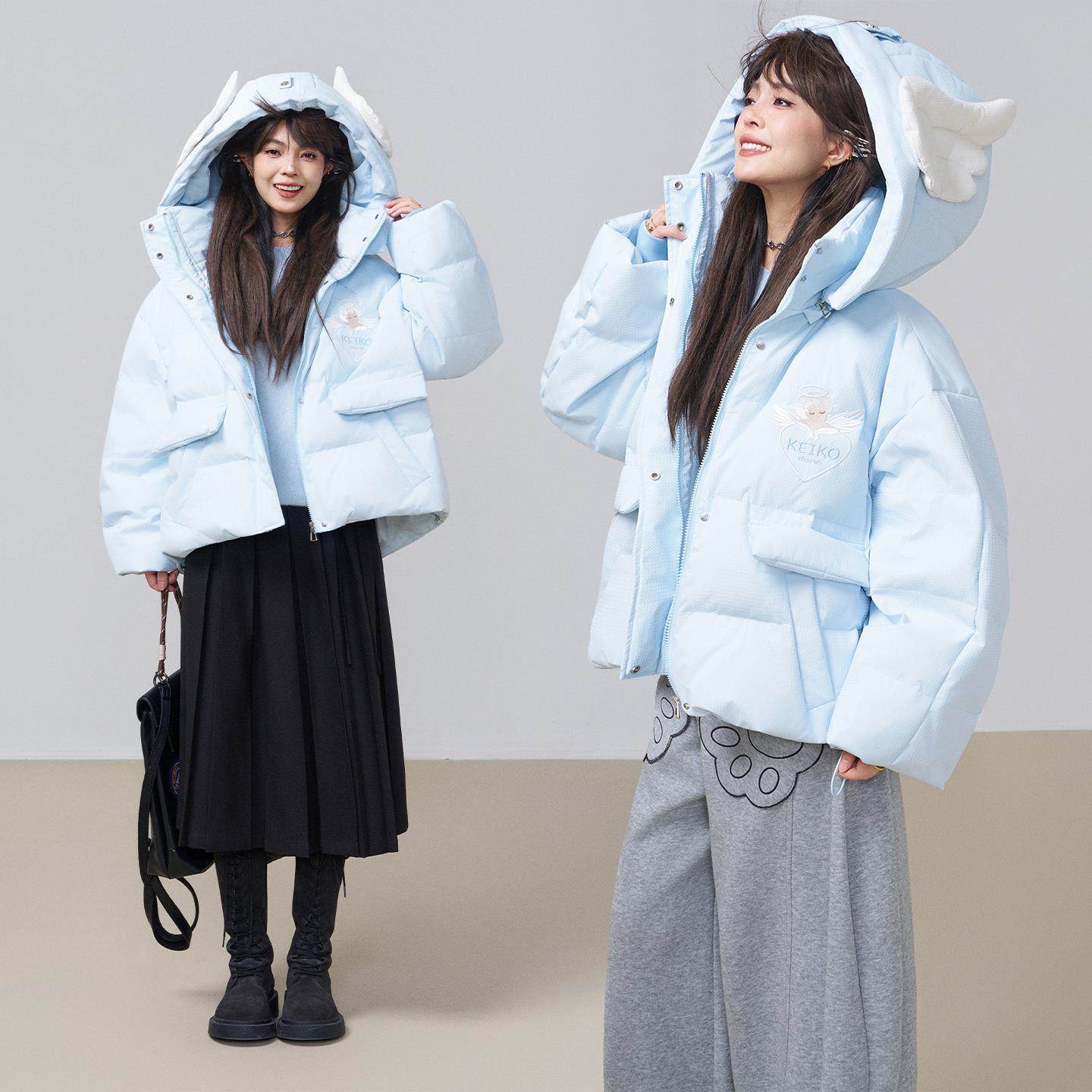 📚 KEIKO 俏皮软语90绒子白鸭绒短款羽绒服冬量感暖核加厚连帽面包服