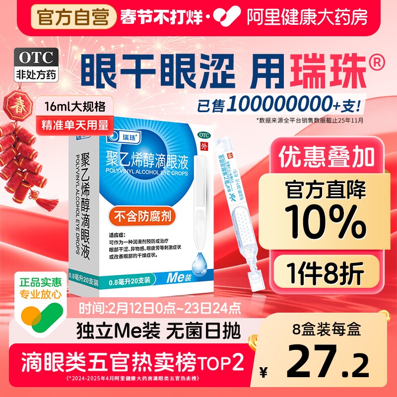 📚 瑞珠聚乙烯醇滴眼液20支干眼症疲劳眼药水缓解人工泪液干涩眼睛