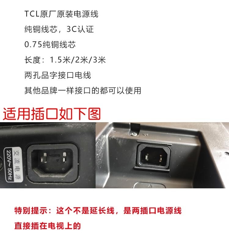 📚 适用海信小墨75E5Qpro75寸E7Npro85寸电视电源线两二孔品字长3米