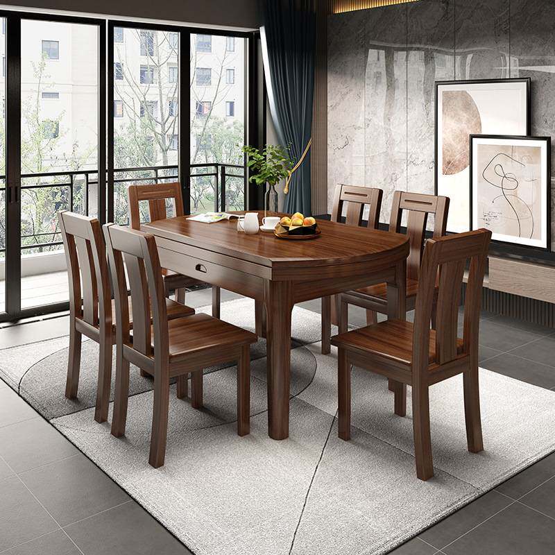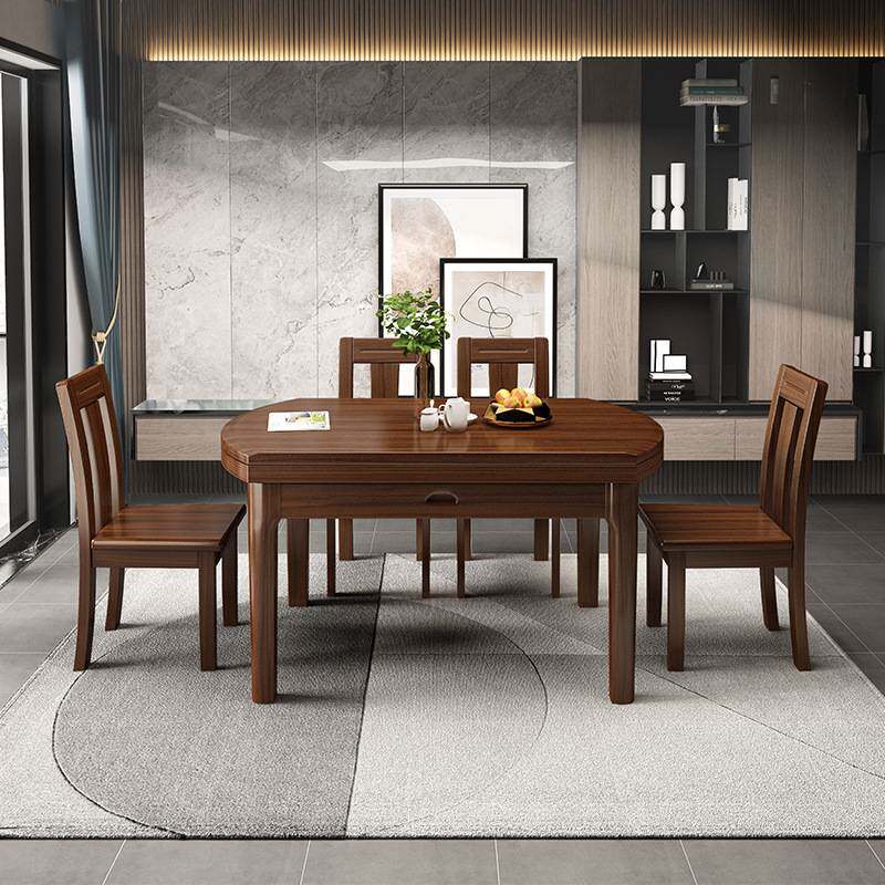 📚 新中式胡桃木可折叠家用小户型餐桌椅子组合实木餐桌雅韵早餐圆桌