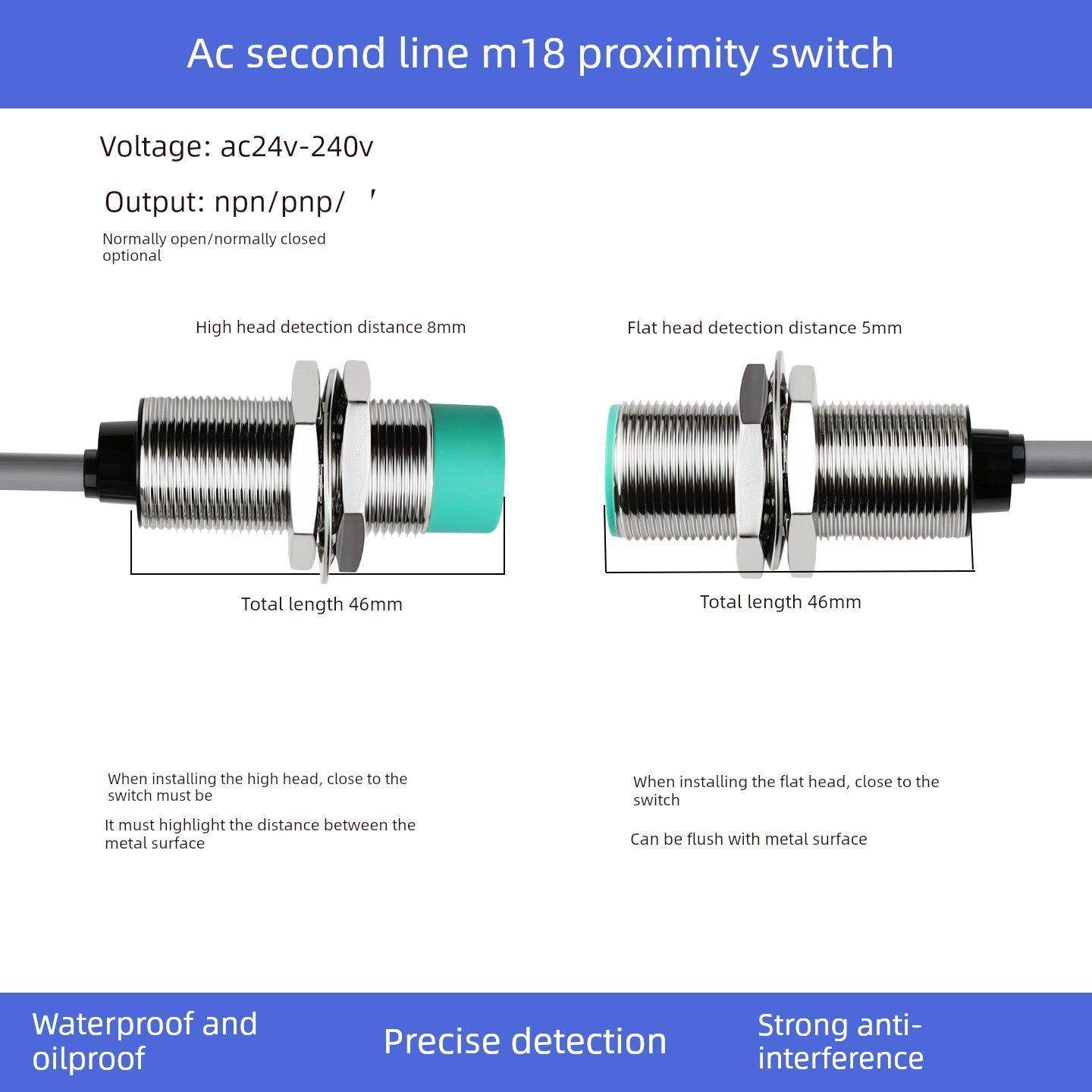 📚 交流双线220Vm12/M18/M30电感式金属传感器接近开关常开/常闭传感