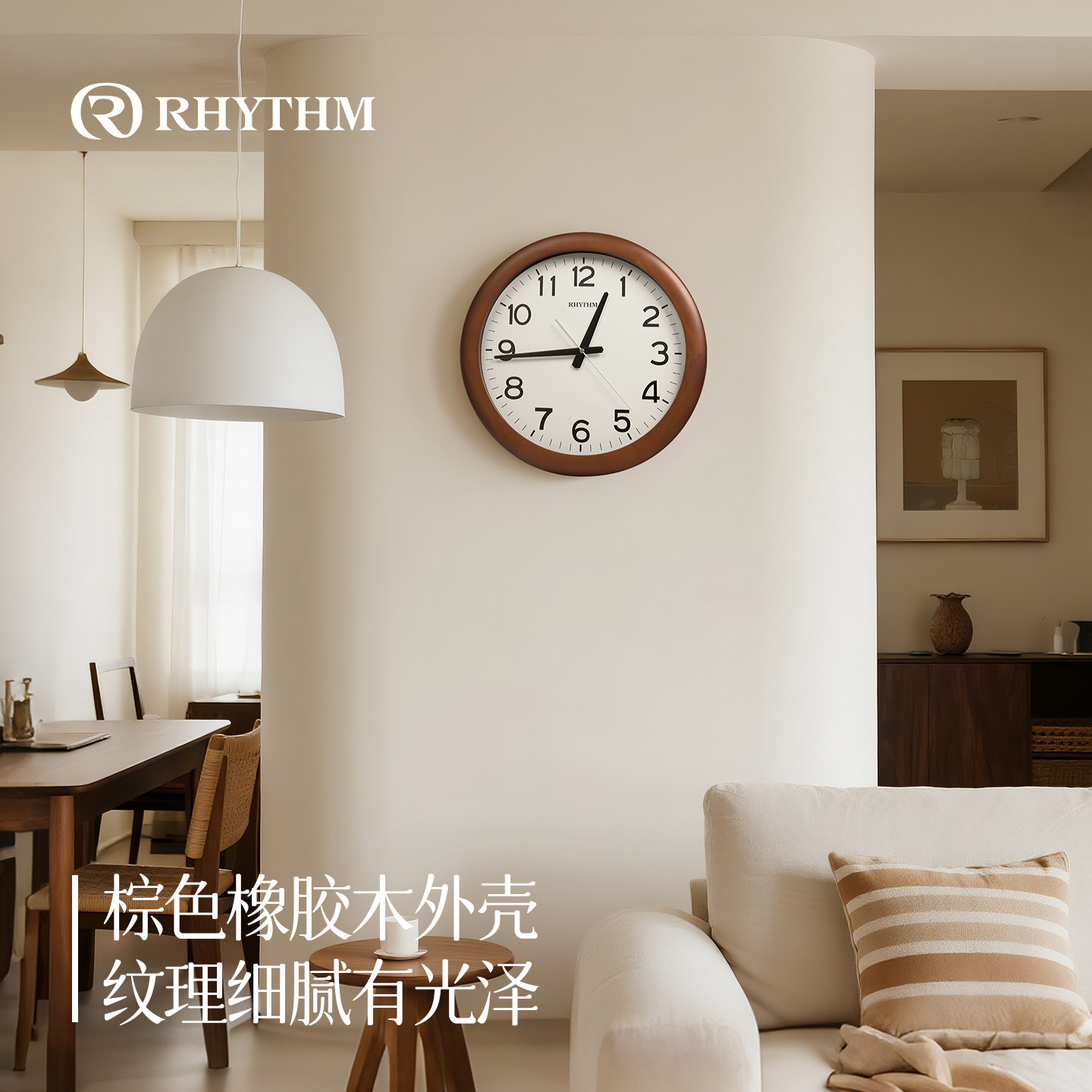 📚 RHYTHM丽声客厅挂钟实木2026新款创意免打孔钉现代简约石英钟挂表