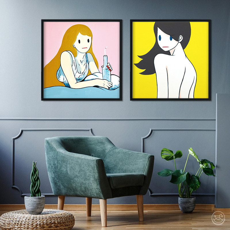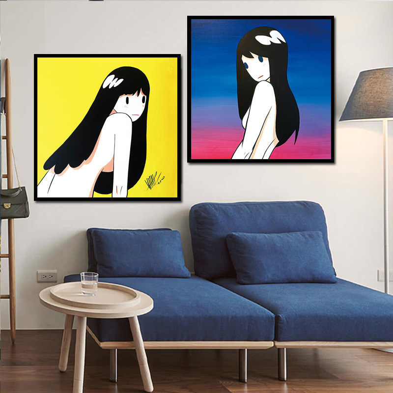 📚 日本潮流卡通艺术插画天野健版画挂画儿童房女抽象少女人物装饰画