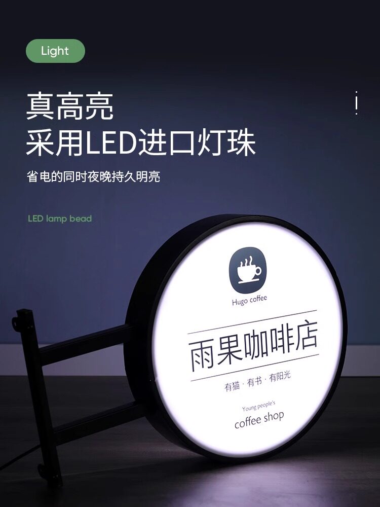 📚 灯箱广告牌圆形led发光门头小招牌定制侧招挂墙式亚克力户外灯牌