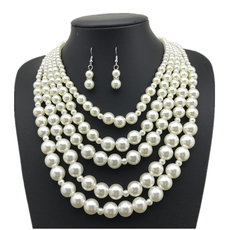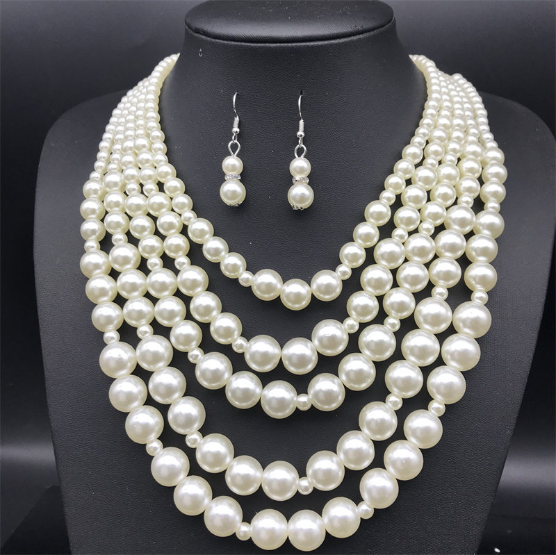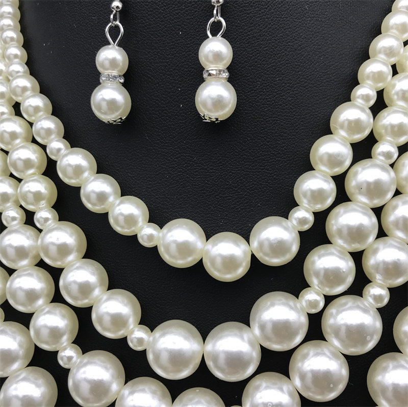 📚 多层夸张仿珍珠五层项链复古礼服旗袍宴会演出饰品necklace锁骨链