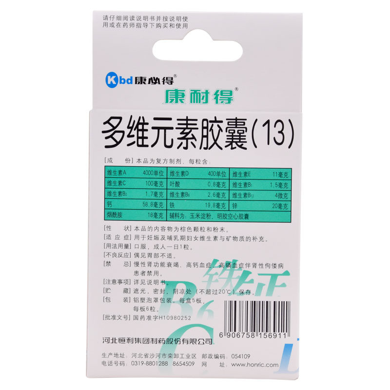 📚 康必得 康耐得多维元素胶囊(13)30粒孕妇补充维生素及矿物质官方