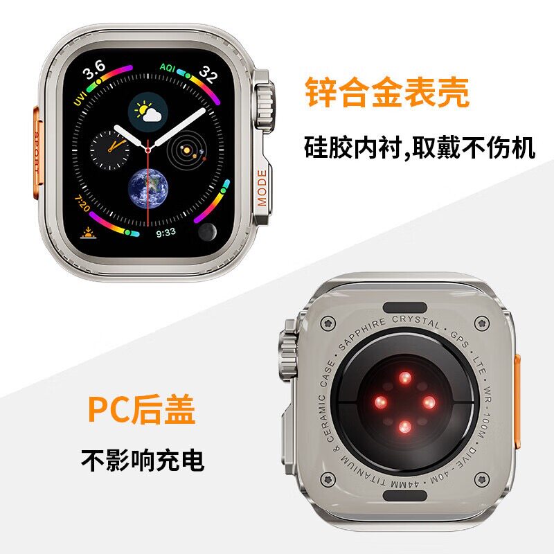 📚 秒变ultra3金属iwatch保护壳适用苹果手表AppleWatchs10表带46mm一体旋钮后盖防摔苹果手表外壳边框合金改装
