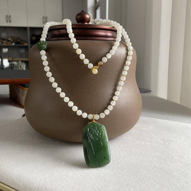 📚 N碧玉籽料莲花牌挂件套装 有原皮朕®开仓 新疆和田玉籽料H