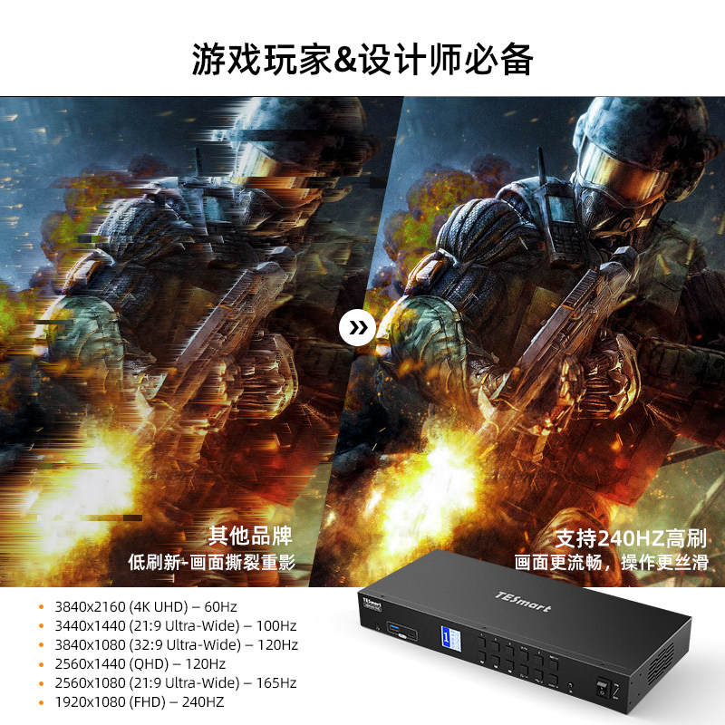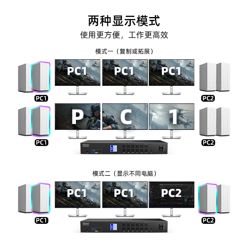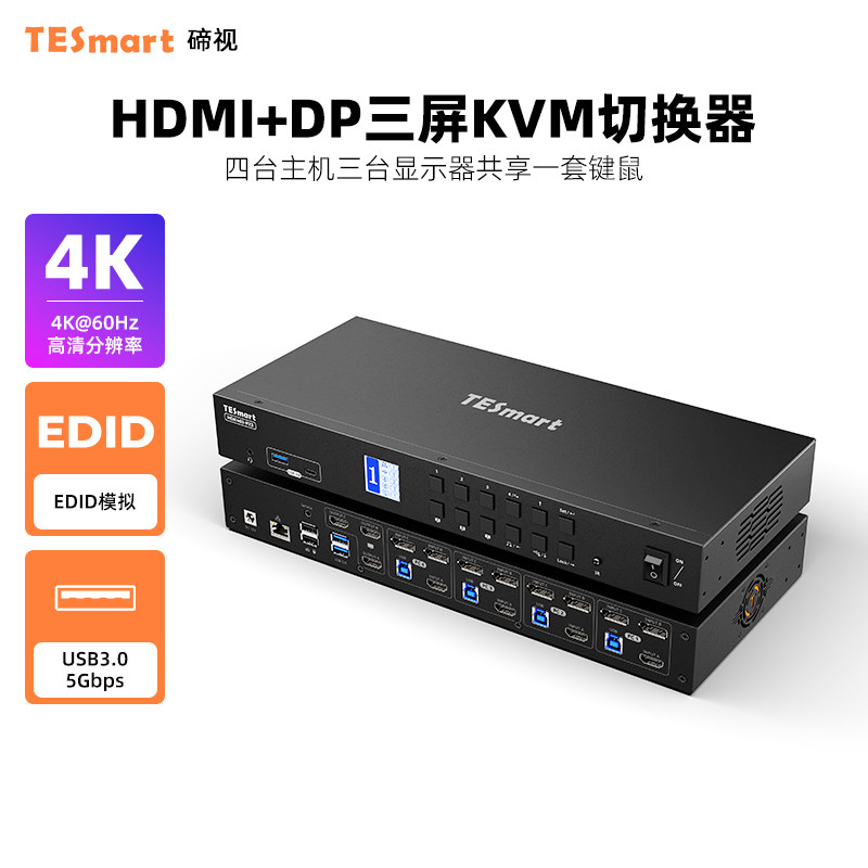 📚 TESmart碲视四进三出KVM切换器HDMI+DP三屏电脑分配器4K60HZ高清共享USB3.0拓展坞支持EDID模拟器千兆网络