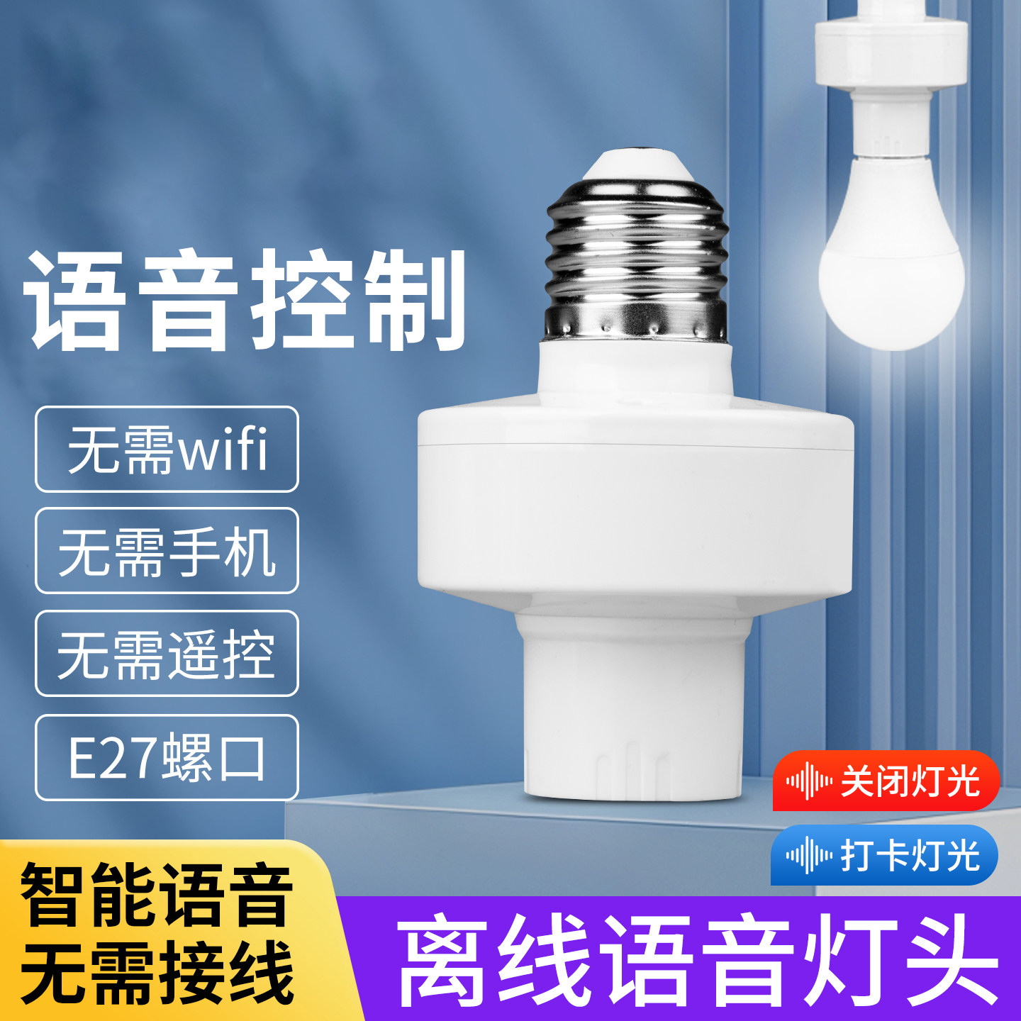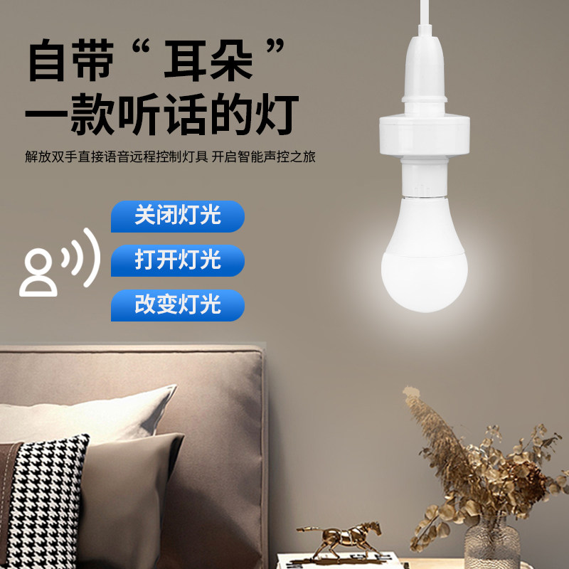 📚 智能离线语音灯头灯控识别声控E27螺口灯泡开关控制遥控灯座家用