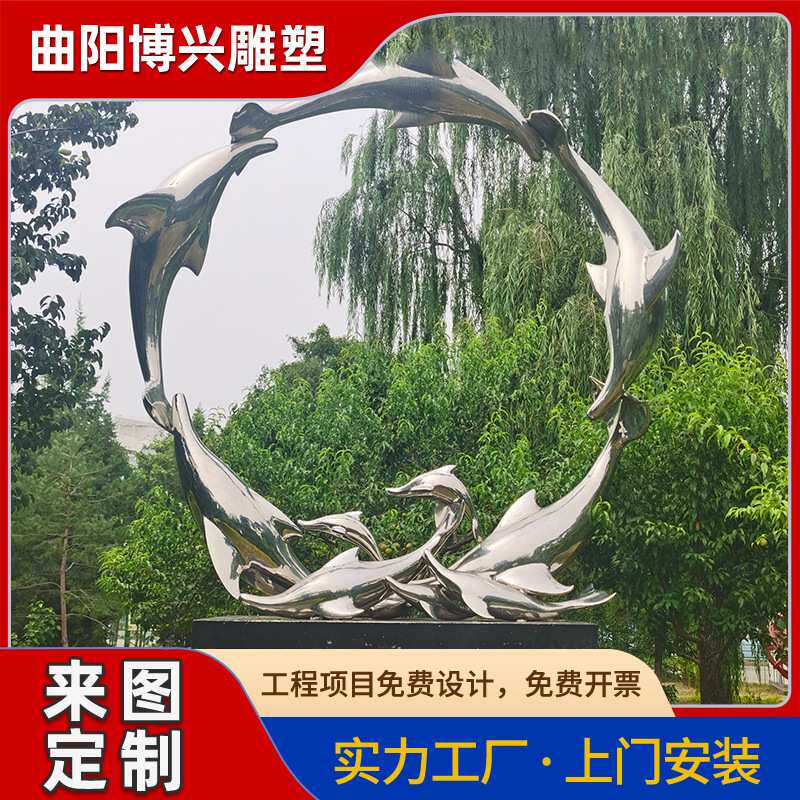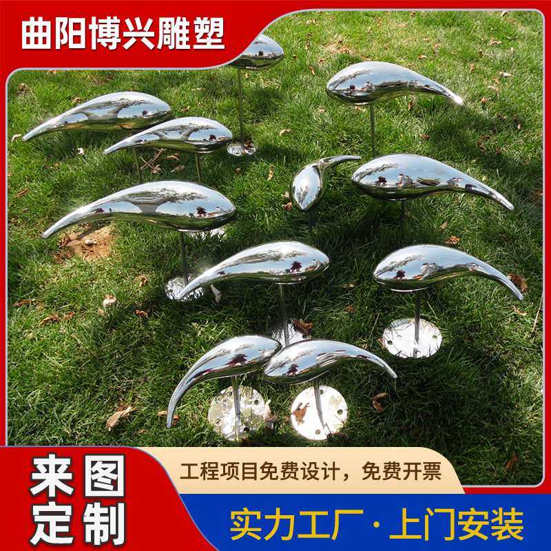 📚 不锈钢鱼群雕塑镜面现代广场园林水景金属鱼摆件不锈钢切片鱼摆件