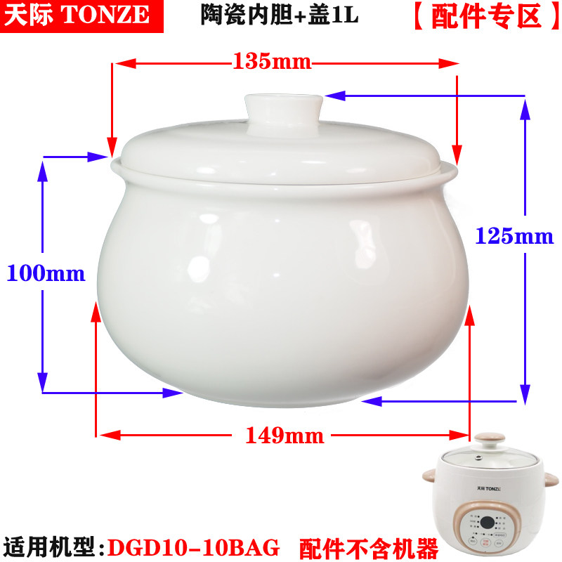📚 天际DGD10-10BAG隔水电炖煲汤锅盅1L升陶瓷内胆盖子单卖蒸炖配件