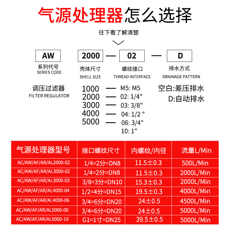 📚 油水分离气源处理单联AW2000-02 3000-03空气调减压过滤器4000-04