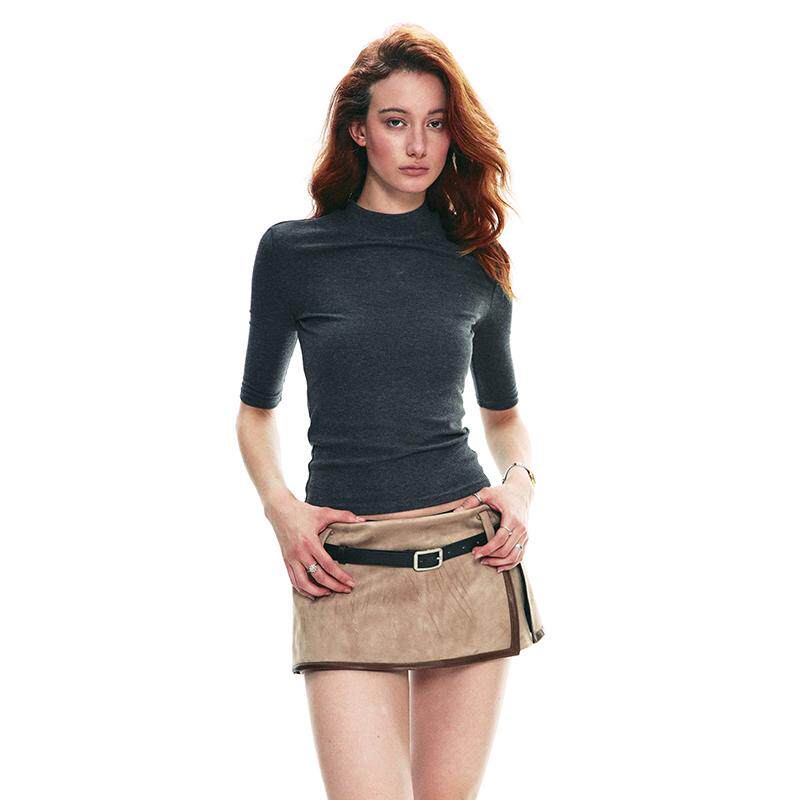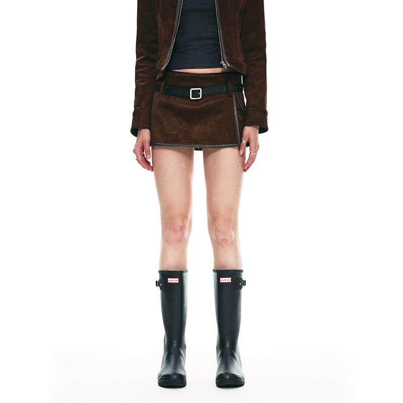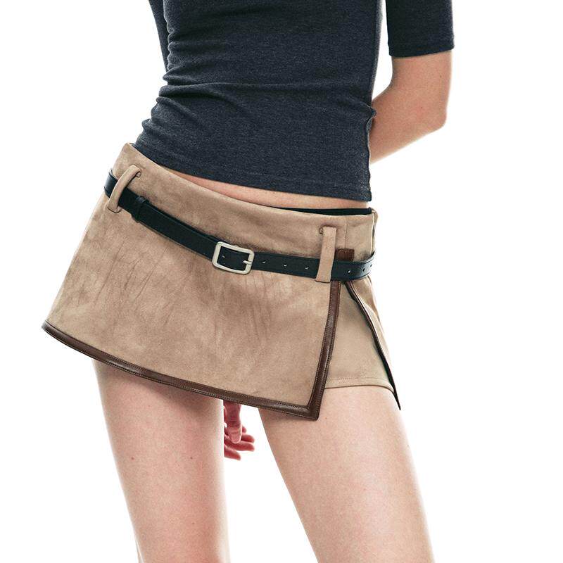 📚 SINGLE MOMENT 25SS复古设计感麂皮假两件超短半裙低腰短裙女