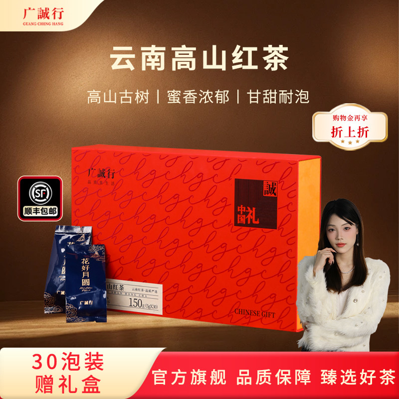 📚 【过节送礼】广诚行云南高山红茶金骏眉自饮茶叶30泡礼盒量贩装