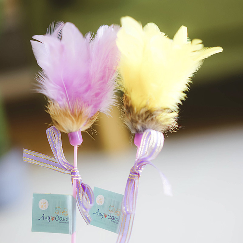 📚 带仙气的毛茸茸 amy carol 兔毛羽毛花朵长条逗猫棒 猫玩具