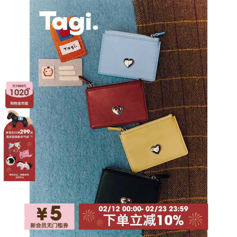 📚 Tagi.奶油鼓鼓爱心金属滴油镶钻复古拉链卡包零钱包