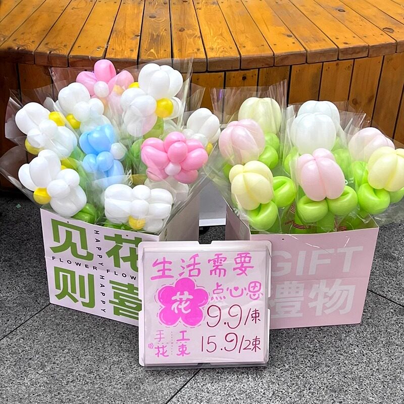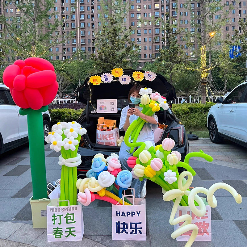 📚 情人节气球花束盒子商场春天氛围场景义卖摊位装饰户外生日布置