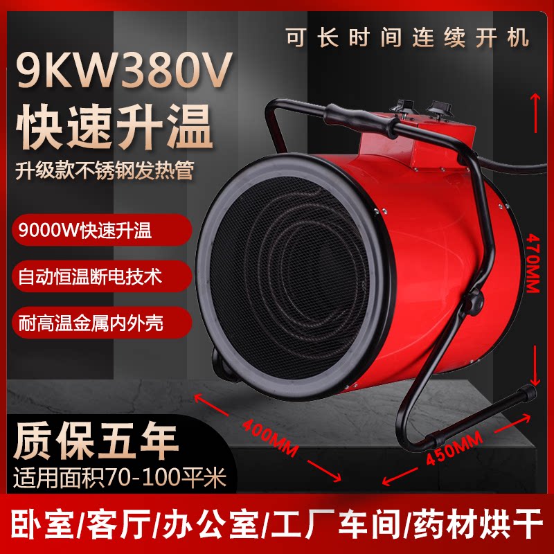 📚 工业取暖器3000W5/9KW养殖大功率电暖风机工厂家用烘干车间热风机