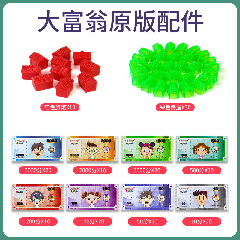 📚 大富翁桌游银牌Q中国世界之旅原版拓展包游戏配件钱纸币小房子