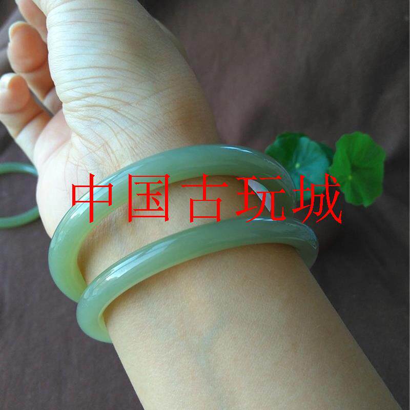 📚 和田玉手镯细圆条美人镯湖水绿晴水手镯子青海料碧玉青白玉叮当镯