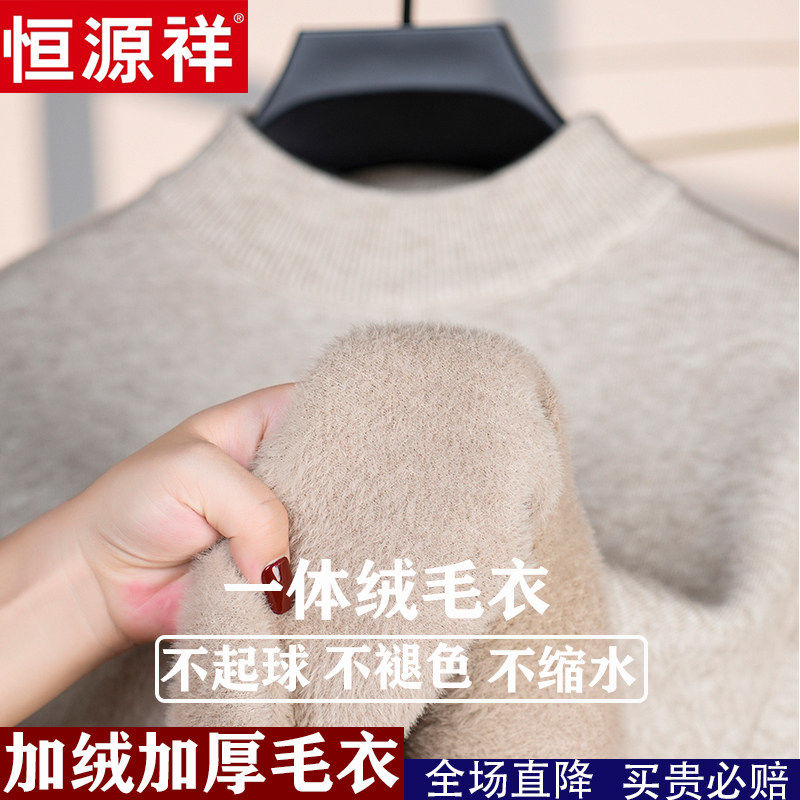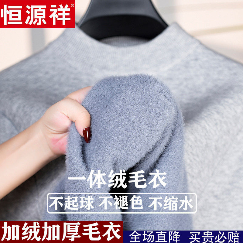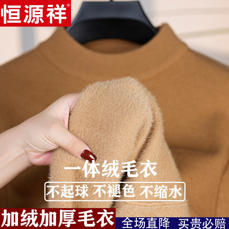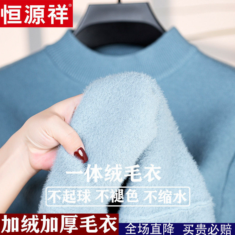 📚 恒源祥新款100%纯羊绒衫加绒特加厚一体绒半高领打底羊毛衫毛衣男