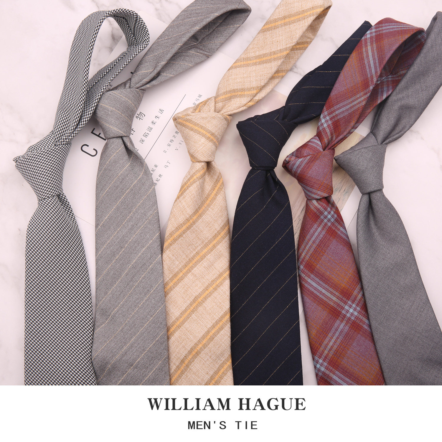 📚 男士灰色黑色棉布领带 条纹经典风格格子西服店配饰8CM休闲领带