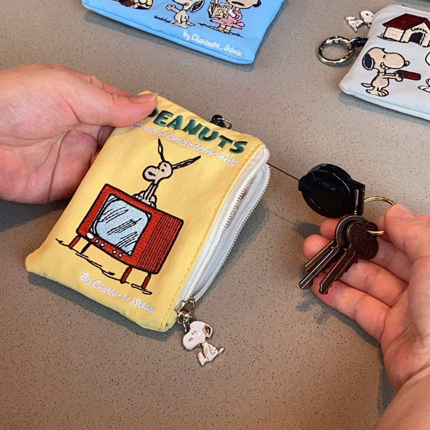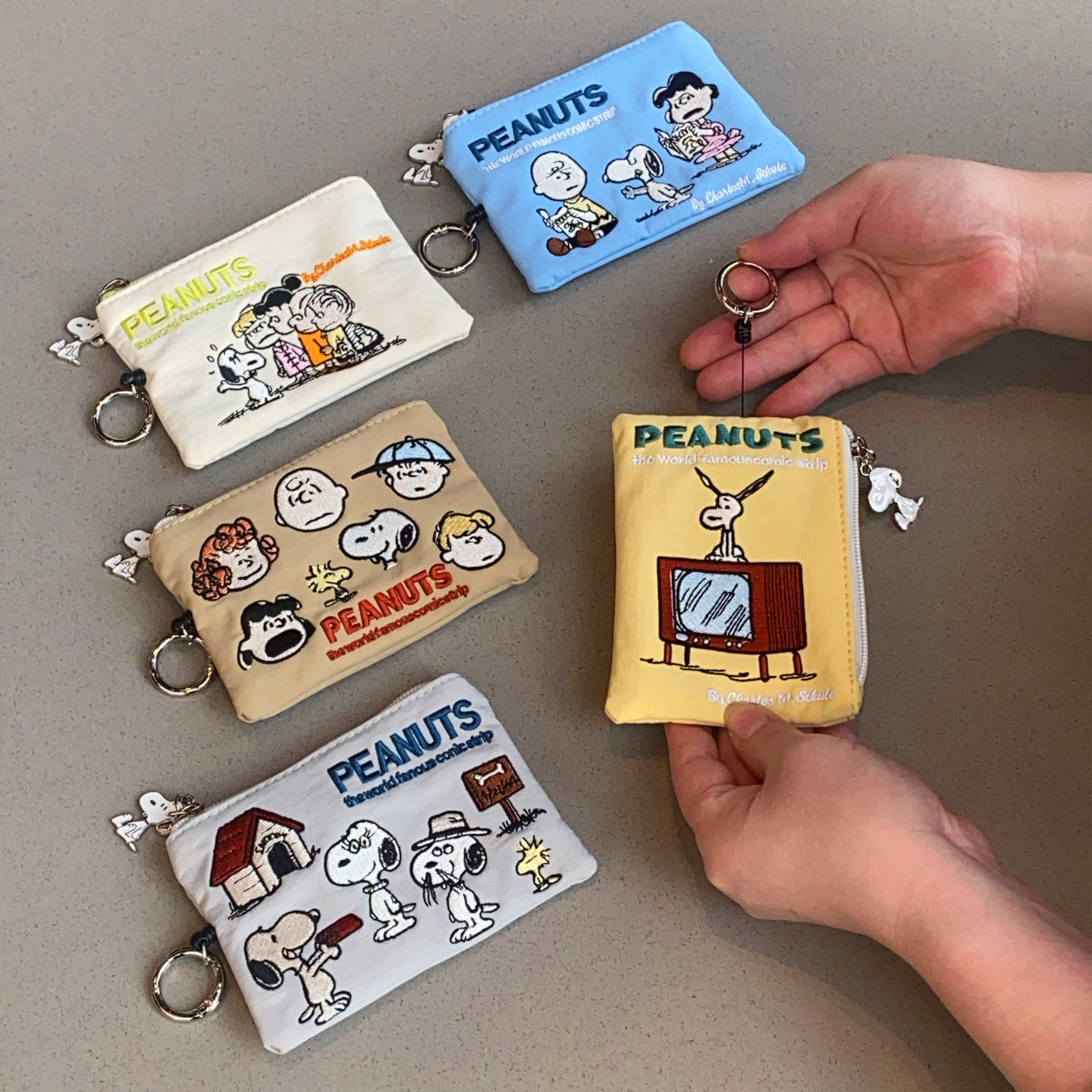 📚 日系卡通狗狗查理刺绣可伸缩挂钩钥匙包卡包零钱包可爱挂饰收纳包