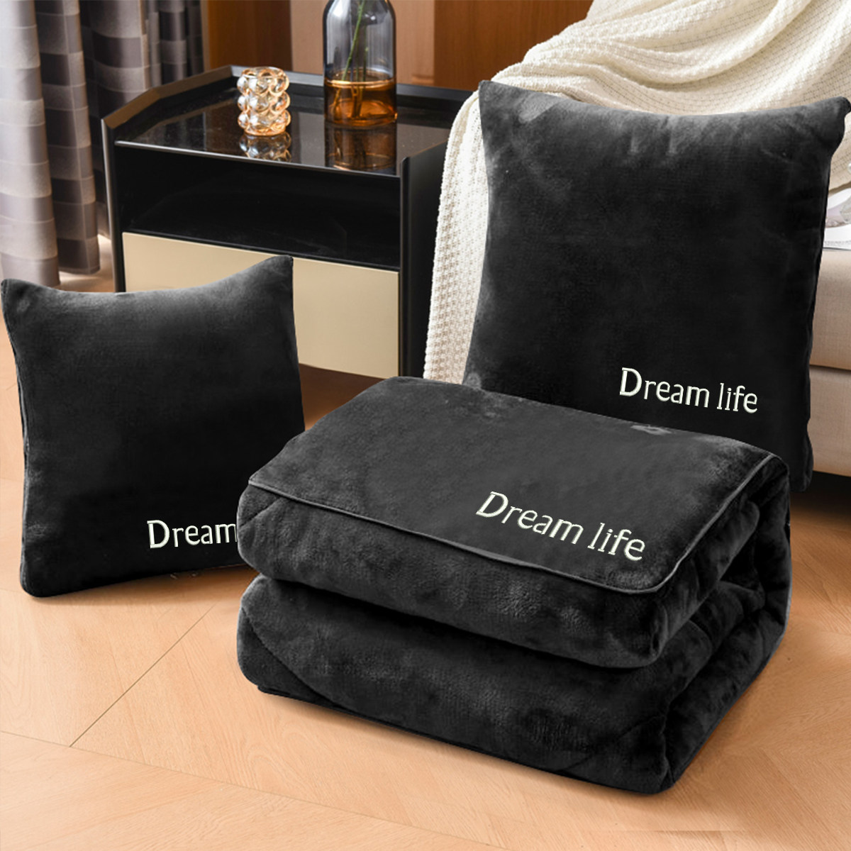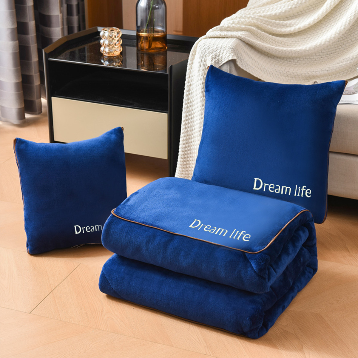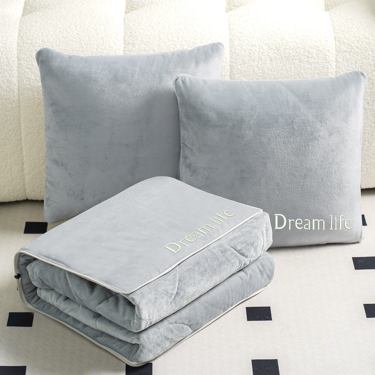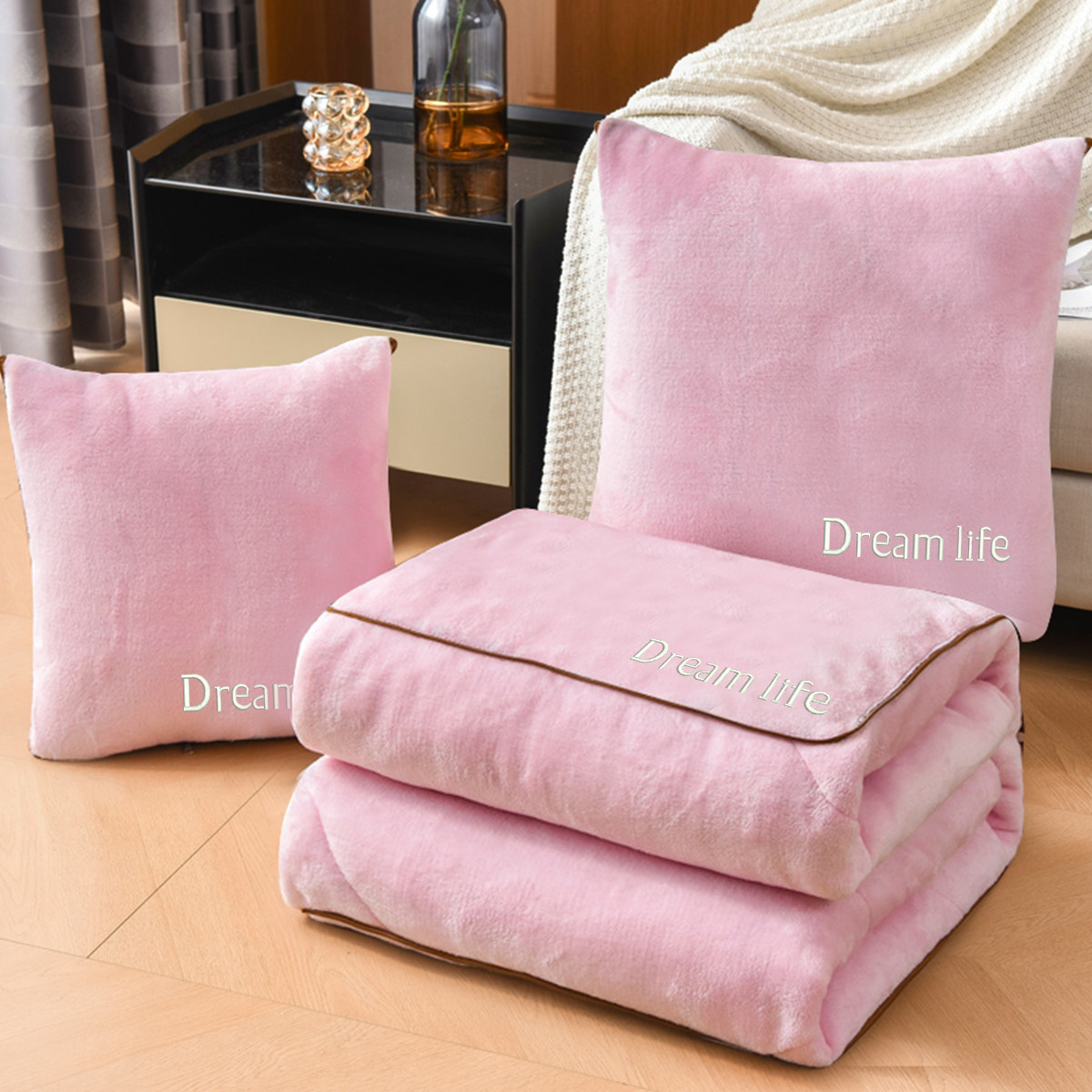 📚 珊瑚绒抱枕被子两用高级感可定制刺绣办公室午睡靠枕空调被冬季